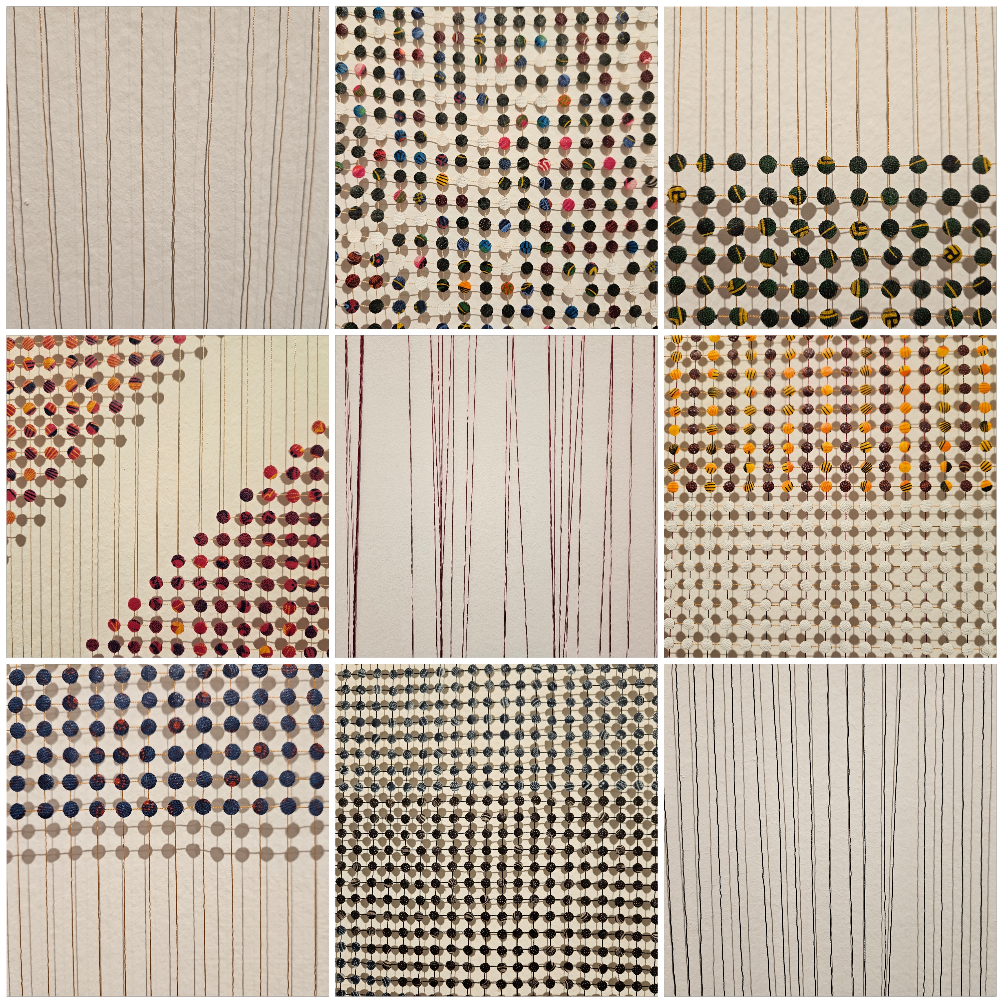 Les œuvres de la jeune artiste Bonolo Kavula, situées entre tissage, gravure, sculpture et l’installation. En utilisant l’unité simple du cercle et de la ligne et en incorporant le tissu traditionel sheshwe, Kavula a créé un langage visuel unique qui réimagine le langage du post-minimalisme et de l’art sériel occidental des années 1960 tout en convoquant des références culturelles et ancestrales africaines.